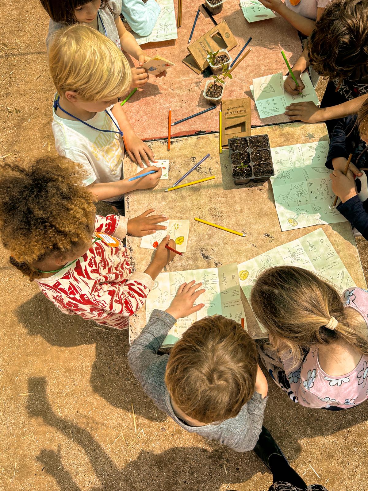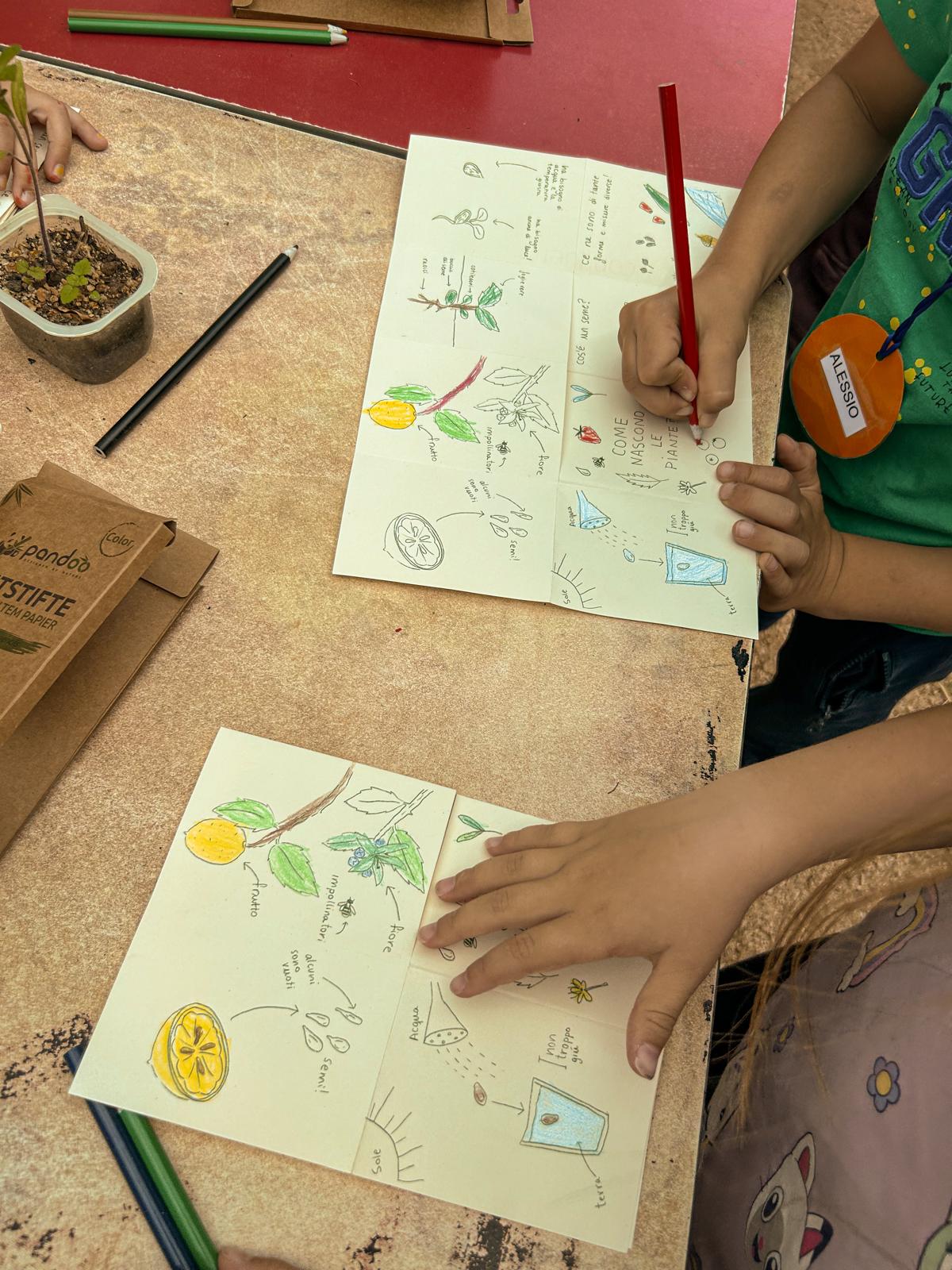 Los niños han aprendido cómo nacen las plantas a través de un tríptico educativo y lúdico que han pintado y personalizado con colores.