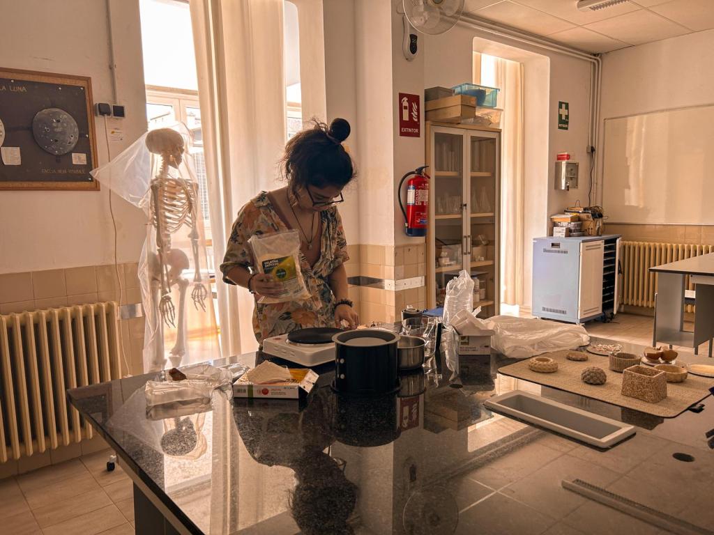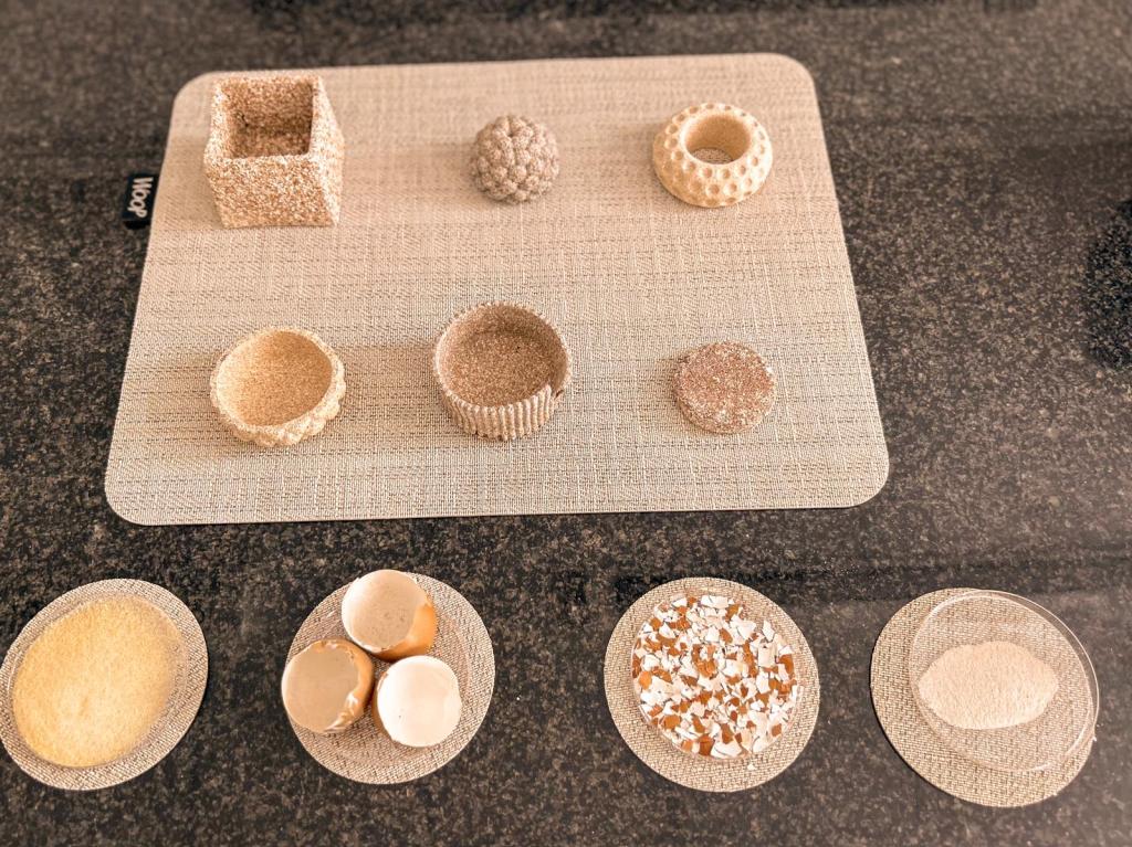Algunos ejemplos de biomateriales utilizados en diseño incluyen bioplásticos, biocerámicos, entre otros. En este proyecto, trabajamos con los adolescentes para crear una maceta de biocerámica, compuesta por cáscara de huevo, agua y gelatina.