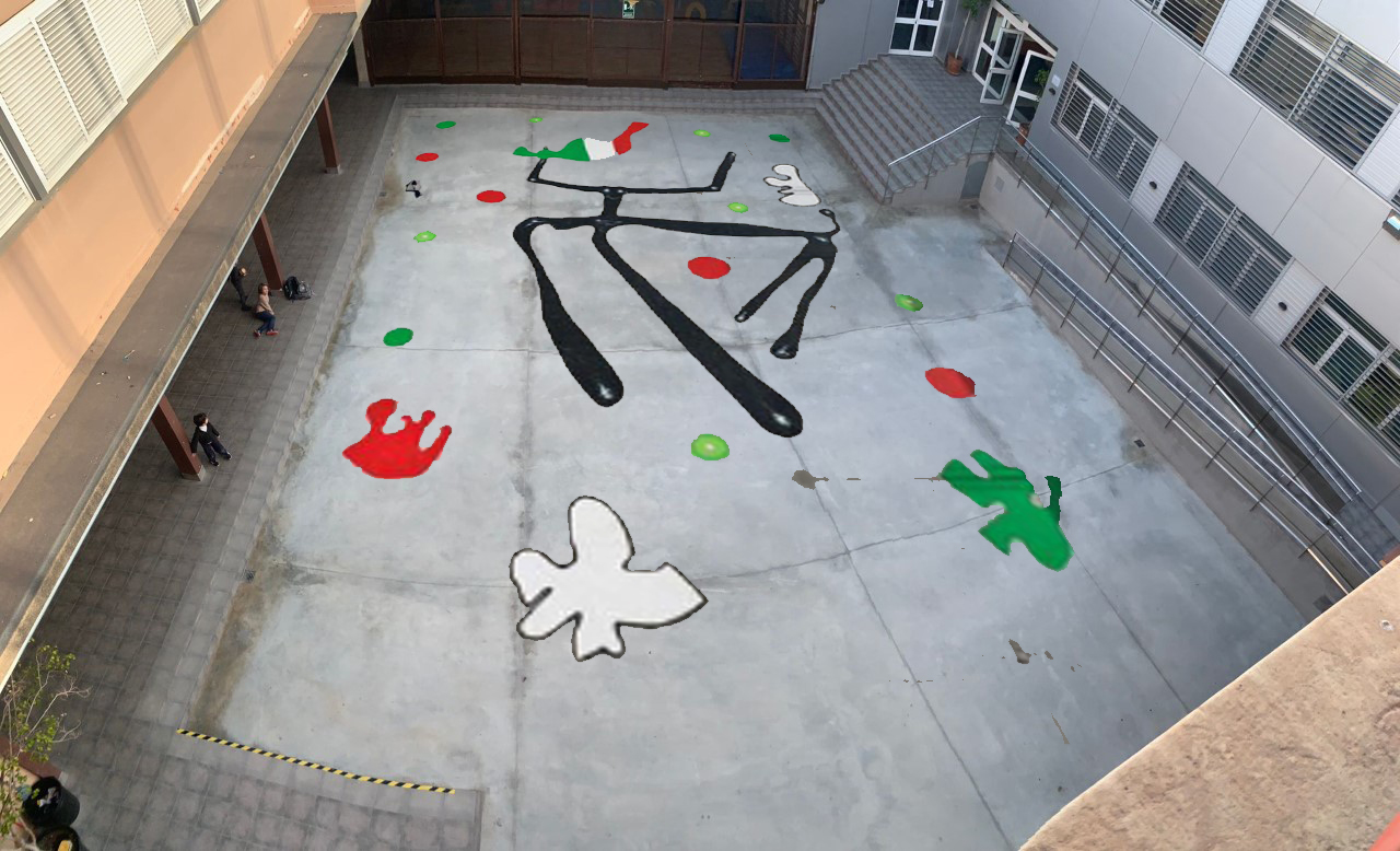 Pintura del suelo del patio principal de la escuela por el artista Eduard Arranz-Bravo