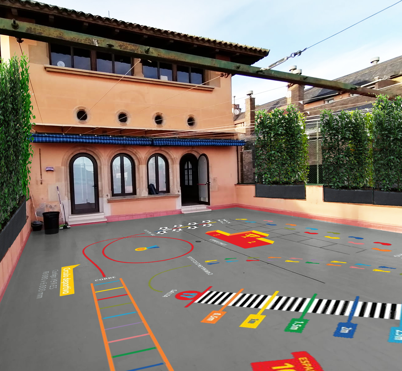Pintura de juegos educativos en el suelo del patio superior