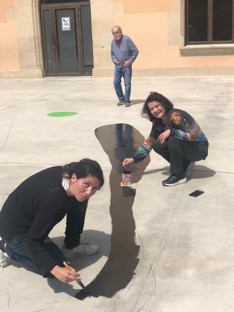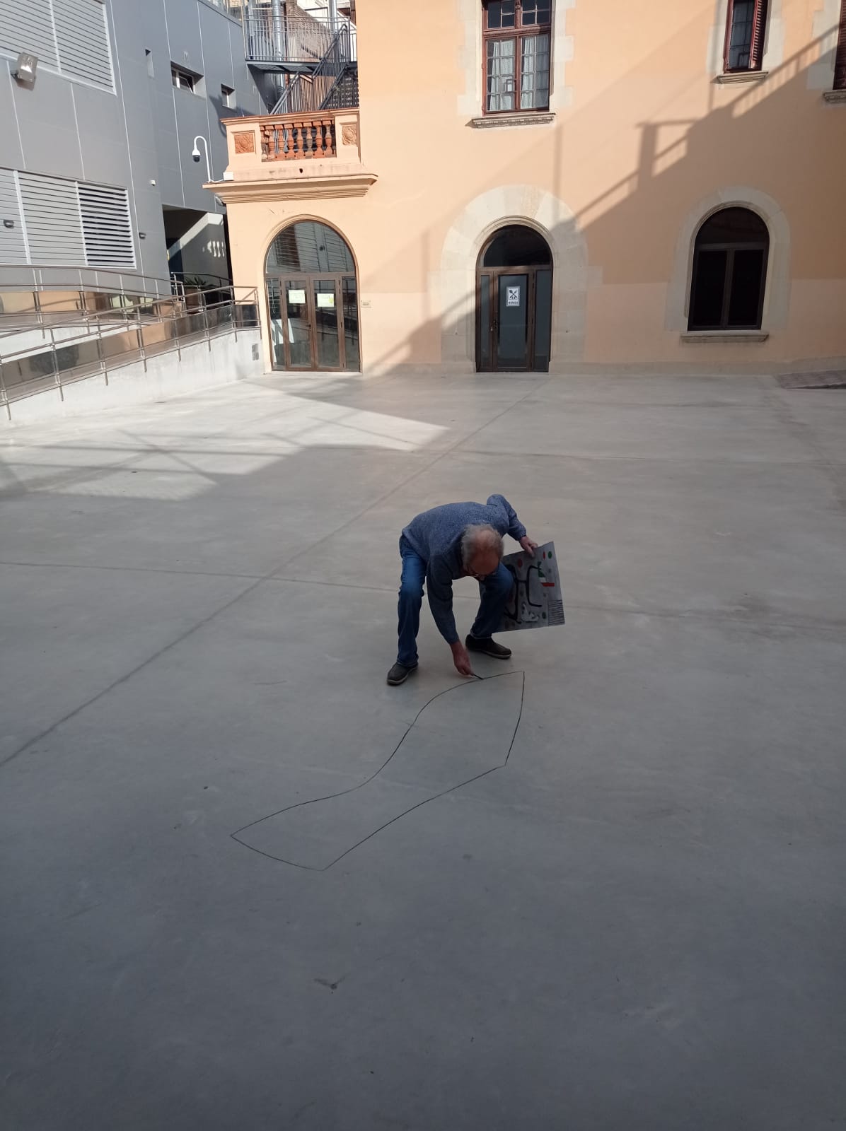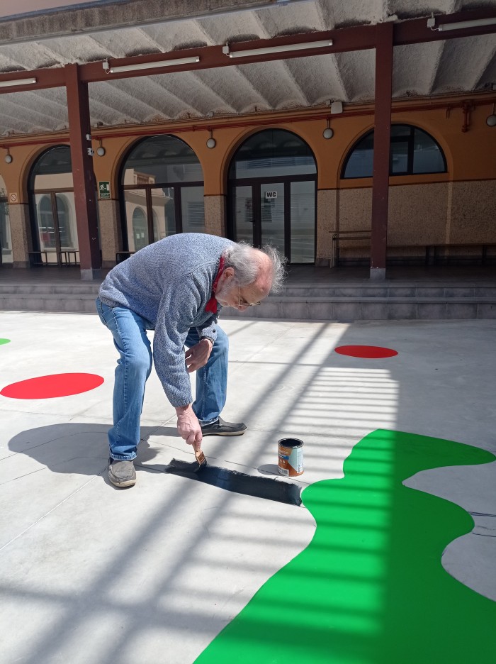 Pintura del suelo del patio principal de la escuela por el artista Eduard Arranz-Bravo (1941 – 2023)