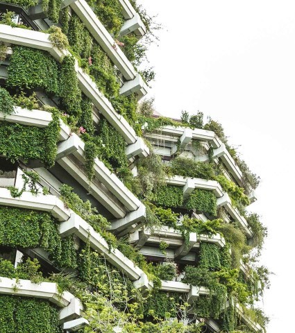 Inspirados en el proyecto italiano ‘Il Bosco Verticale’ de Stefano Boeri en Milán, que incluye 480 árboles grandes, 300 pequeños, 15,000 plantas perennes y 5,000 arbustos, este edificio aporta beneficios ambientales como la absorción de 30 toneladas de dióxido de carbono y la producción de 19 toneladas de oxígeno anuales.